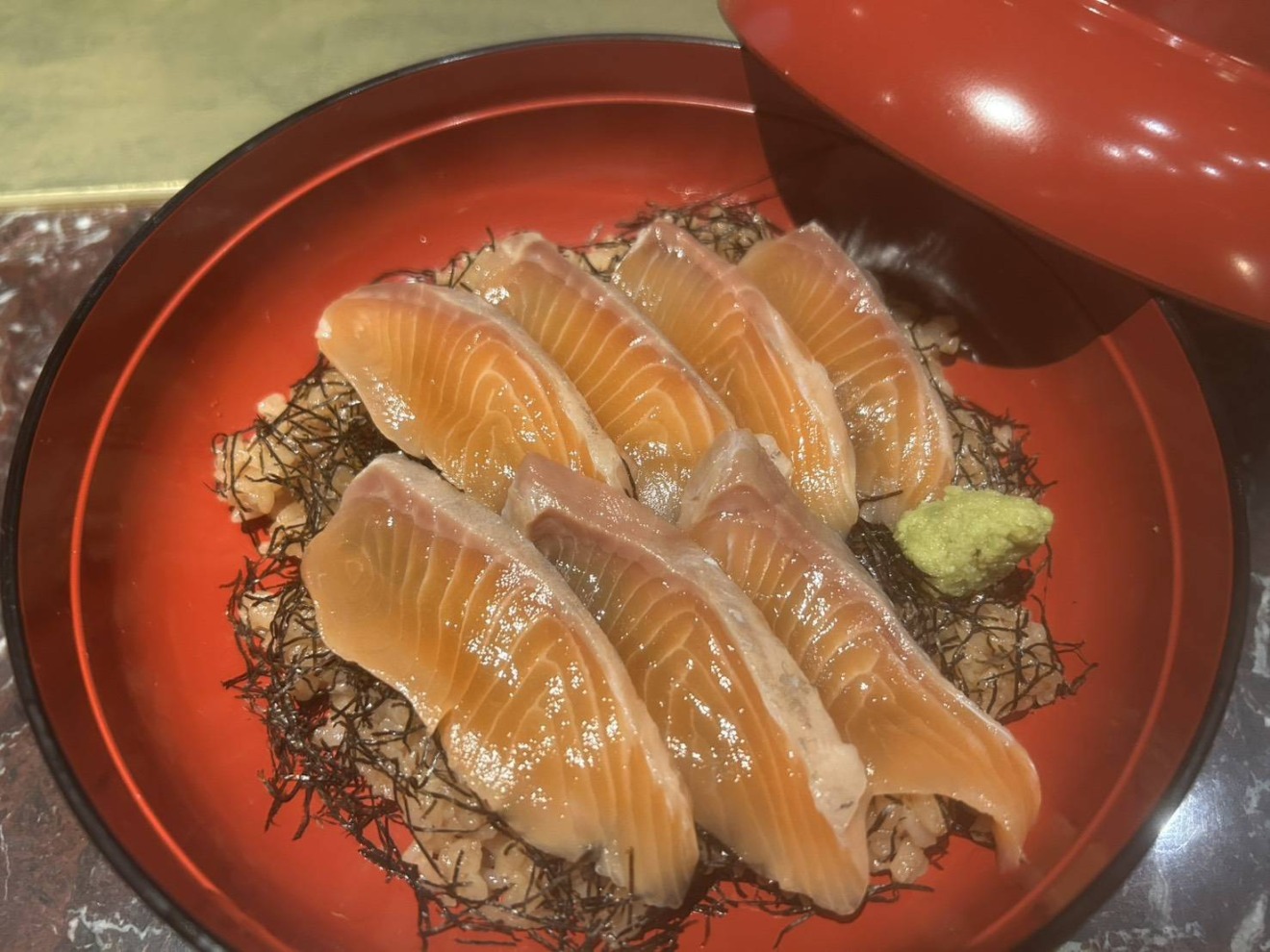 サーモン丼 テイクアウト専用 数量 サーモン丼個 2,650円 お買い物カゴに追加 関連商品 NEW 鮪丼 2,900円 NEW 上寿司にぎり 3,450円 NEW サラダ巻き 2,460円 お昼のお品書き 辰山~しんざん~ 2,600円 夜のお品書き 雅空~みそら~ 4,800円 NEW 賄い丼 2,650円